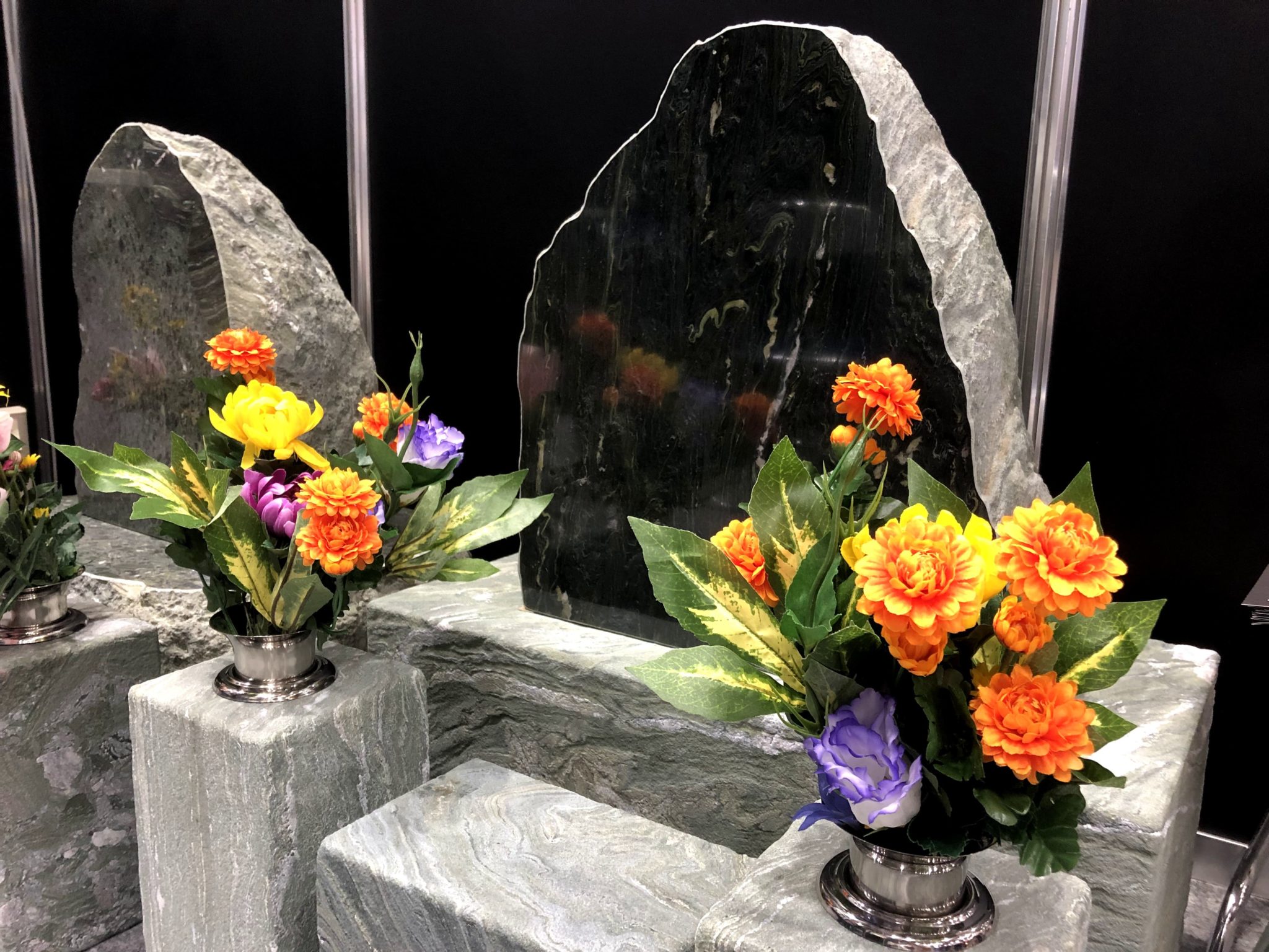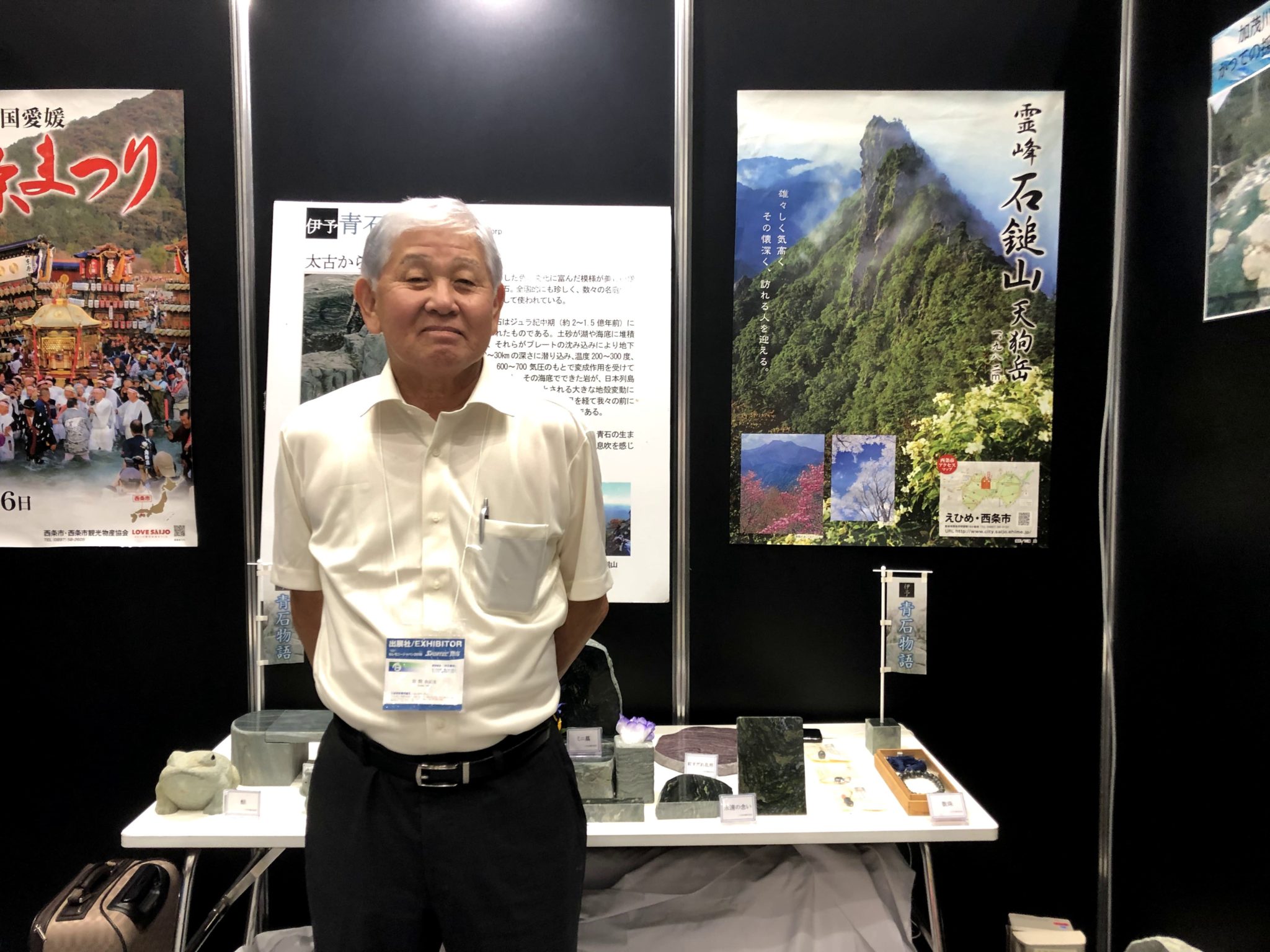 今回のブースで大きく取り上げていたのは、高知の土佐で採れる『伊予の青石』だ。約2億年前のジュラ紀から悠久の時間をかけた地殻変動によって生み出された青石は、これまで立派な庭園や墓石に使われてきた。 伊予の青石は20年ほど前から枯渇化が進んでおり、その希少価値は年々高まってきている。現在は在庫を切り売りしている状況だという。
