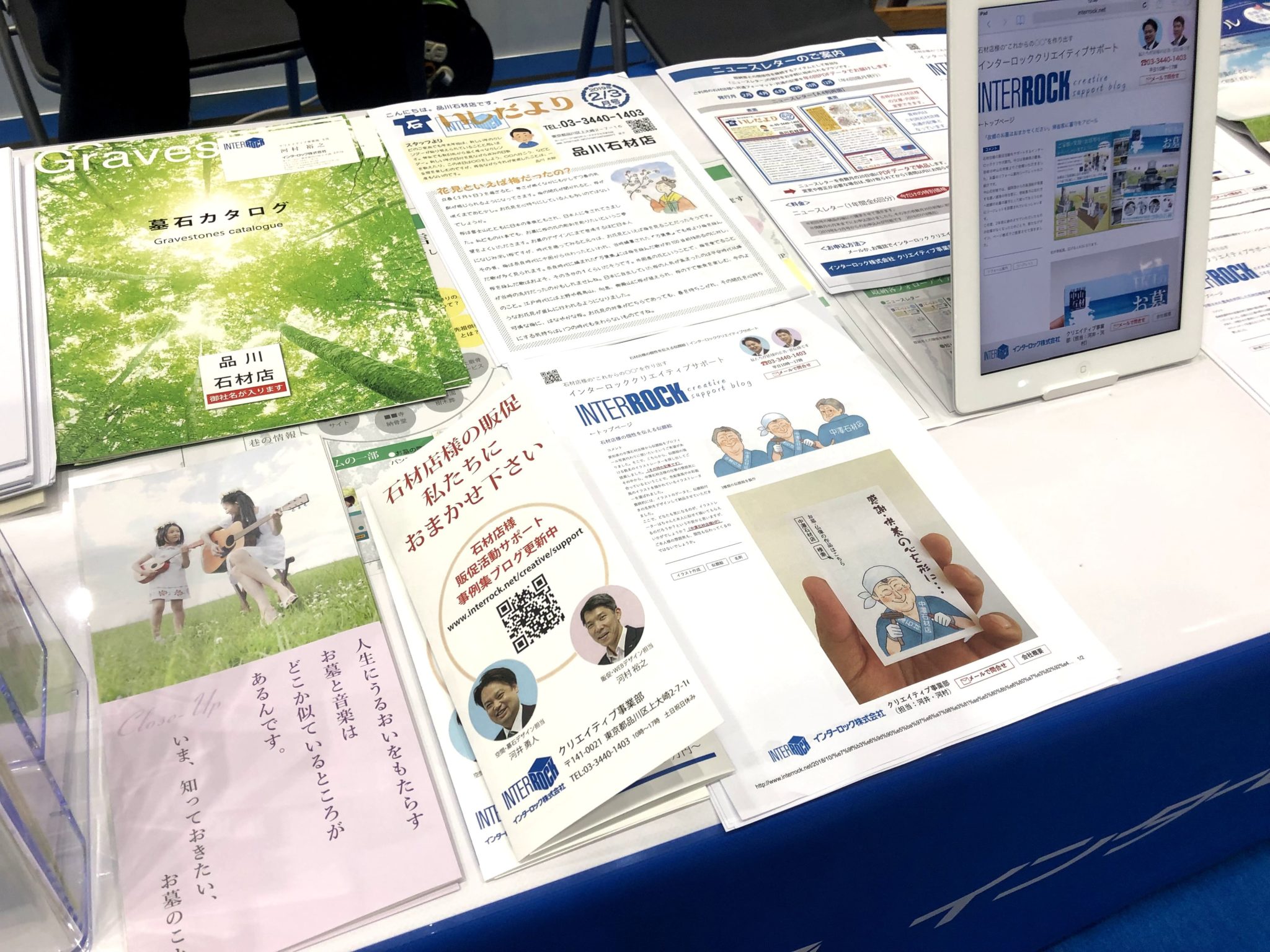 今回のイベントでは、この「インターロッククリエイティブサポート」を大きく打ち出した。 ①地域のお墓の情報発信 ②集客&選ばれるお店作り ③既納客のアフターフォロー の3つのサポートがあり、石のお墓を建てる事の重要性を伝えたり、パンフレットなどの販促物を制作したりといった手助けを行なっている。 石材店の需要が年々減少傾向にあるなか、石材店に新たな付加価値を提供して顧客獲得競争に勝つためのフォローをする手法をとった。これは間接的にインターロックの墓石の売り上げにも繋がるという仕組みにもなっている。