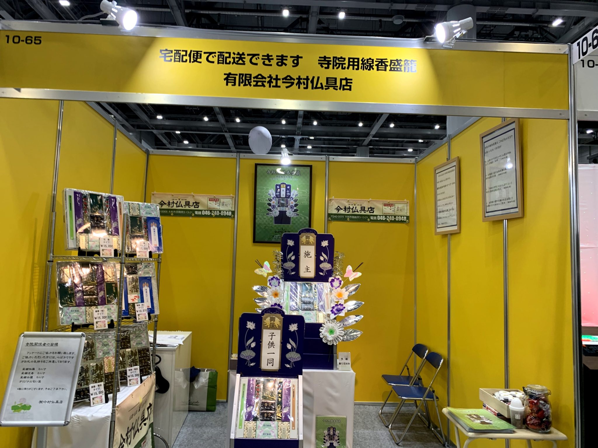 今回のイベントでは、「寺院用線香盛籠」の全国的な展開を目指しての出展である。「寺院用線香盛籠」というのは、法事の際に施主がお供えする果物や缶詰といった一般的な盛籠に代わって、線香やロウソク、焼香、香炭といった寺院にとって、日常的に利用するものを詰めたものである。寺院は、通常よりも多くの盛籠が送られて来る為、果物や缶詰といった一般的なものでは持て余してしまうことがある。「線香盛籠」であれば、日常的に利用できるのはもちろん日持ちもすることなどから寺院にとっても喜ばれるものである。