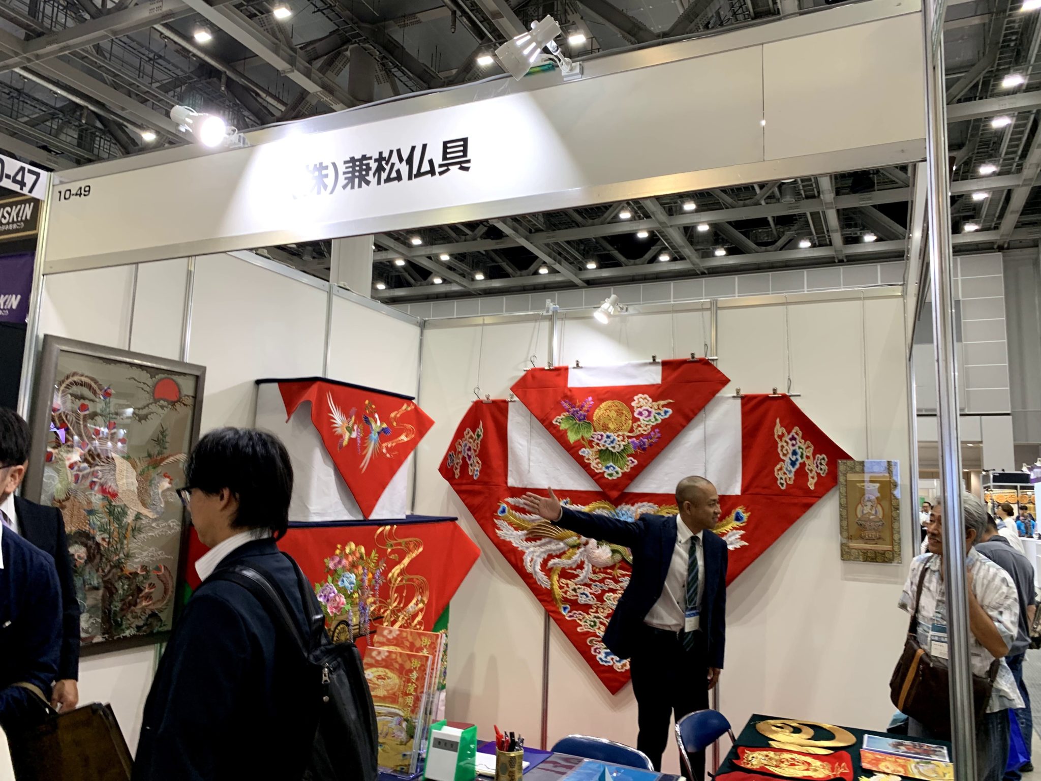 今回のイベントでは、兼松仏具のもつ高い技術力を広く知ってもらうことを目的に出展を決めた。同社の一番の特徴は、高品質な刺繍製品である。自社に手技の職人や手ミシンの職人を抱えていることから、外注をすることなく高品質な刺繍製品を作り出すことが可能である。また、自社に職人を抱えている為、修理修復も可能である。さらに、コンピュータミシンも取り揃えており、どのような刺繍製品に対しても対応が可能であるというのは、かなり大きな強みである。