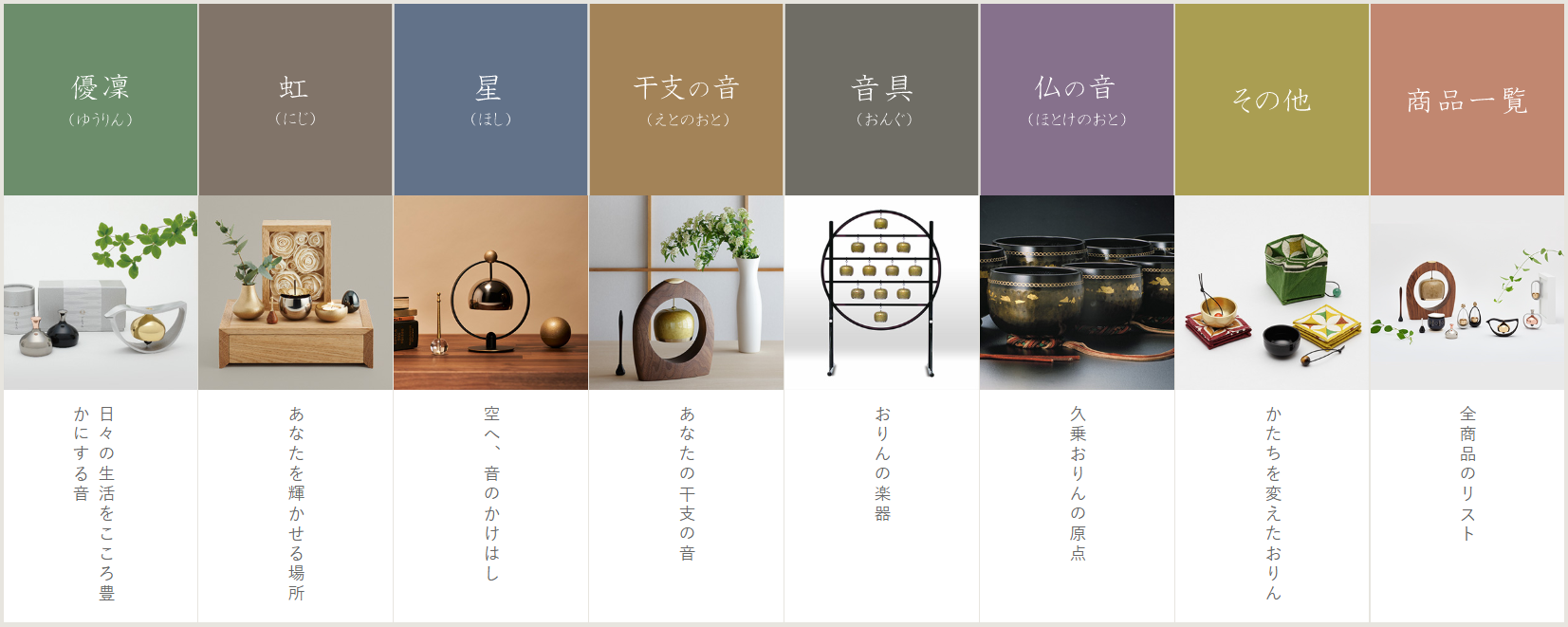 山口久乗は、おりんの製造・販売を手がける会社である。「音と祈り」がテーマの音曼荼羅は、おりんの音を中心に祈りの空間を提案するものである。