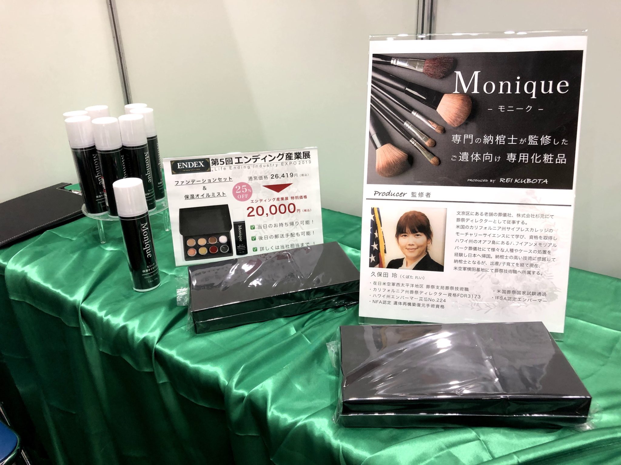 グリーネイチャーは、化粧品の開発企画および製造販売を行なっている会社だ。遺体専用の化粧品の開発に乗り出し、エンディング産業が盛んなアメリカで活躍する久保田玲氏の監修のもと、今年四月に遺体専用の化粧品『monique』を発売した。