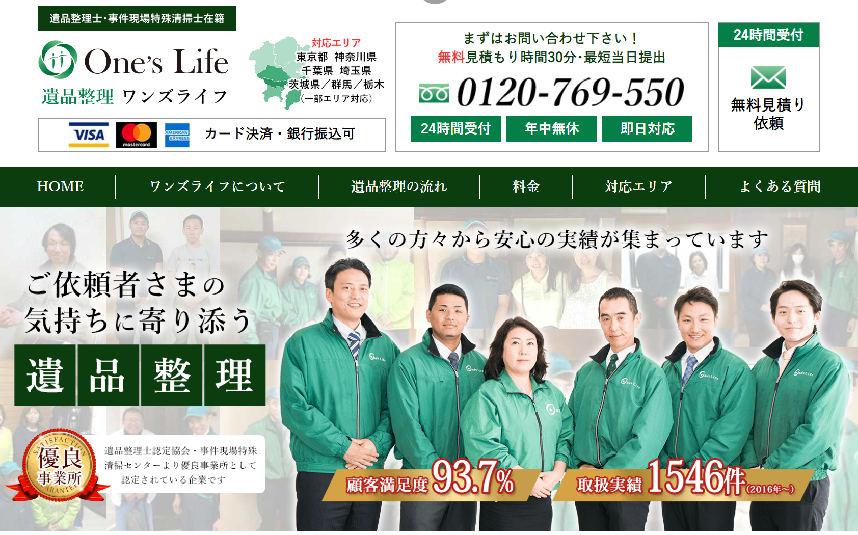 ワンズライフは、遺品整理・生前整理・特殊清掃 ・遺品の合同供養・生前整理等を行う。終活相談にも乗っており、 依頼主のさまざまな要望に応えている。