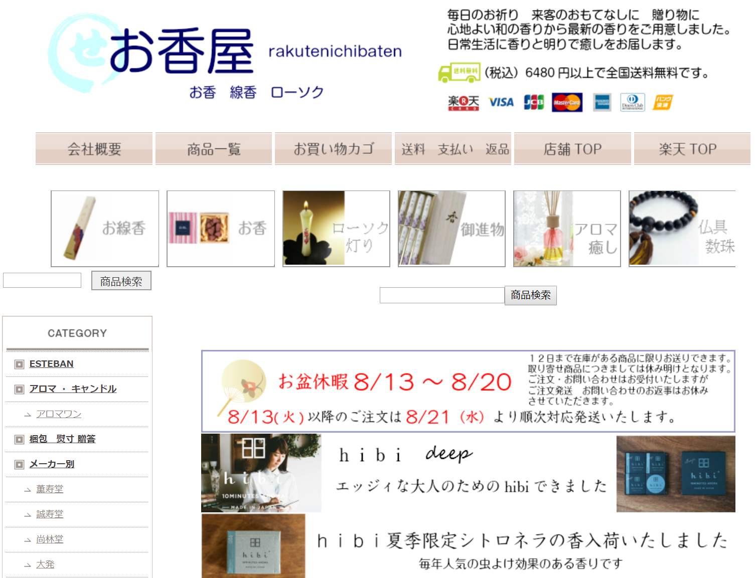 中島晴薫堂は、線香・ローソク・お香・広告マッチの販売を行っている。ネットショップも展開し、幅広い種類の線香やローソクを取り扱う。気軽にこれらの商品を楽しんでほしい、と新たな消費開拓に乗り出している。