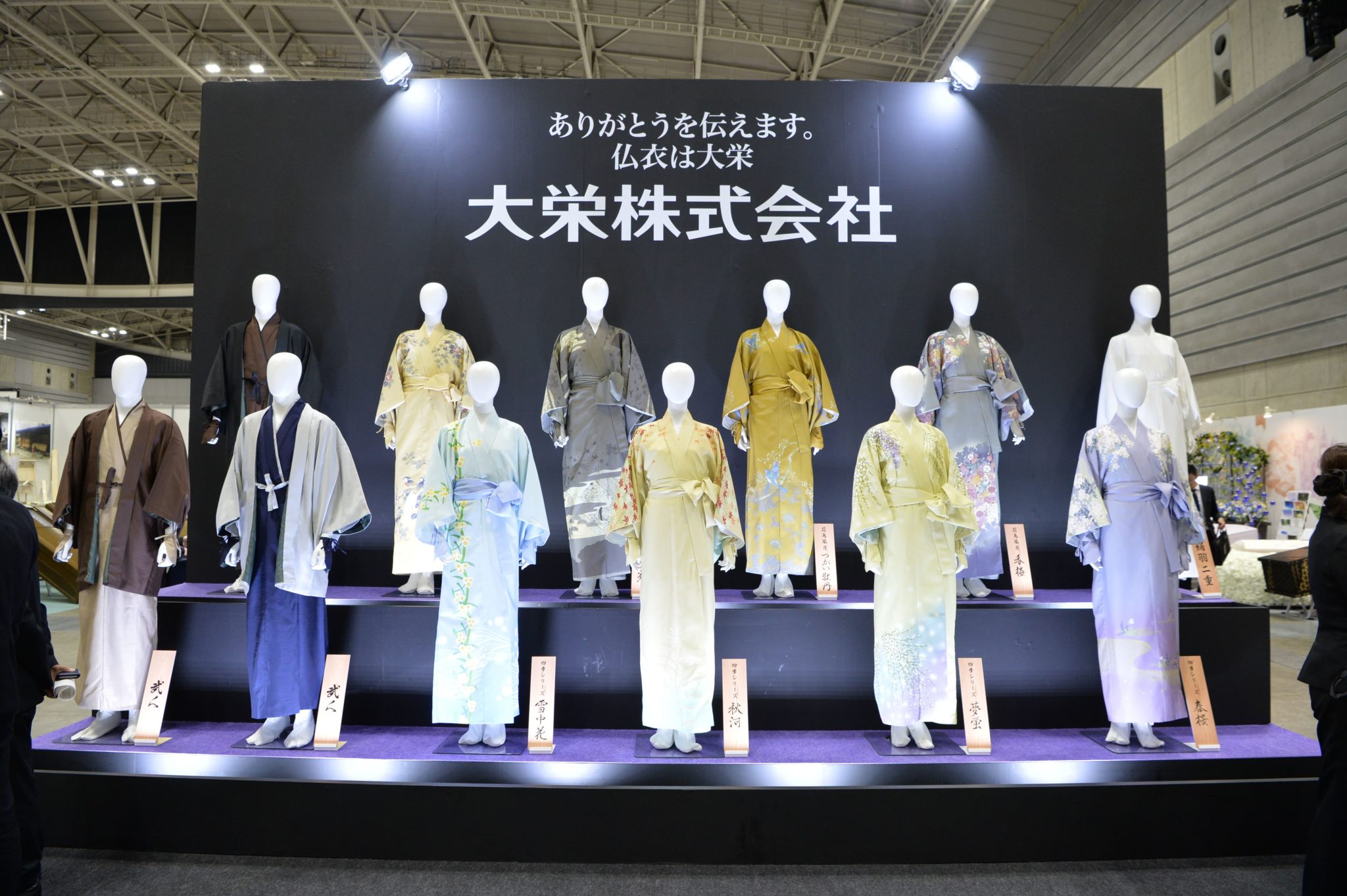 大栄は、福井を拠点に全国展開する葬儀専門商社です。元々繊維会社としてスタートしたため、仏衣や骨袋などの繊維製品に強みがあるのは勿論の事、モノだけでなく、葬儀会館のデザイン、社員研修、納棺や生花祭壇など葬儀会社様に必要なコトも含めた全般のお手伝いが可能。