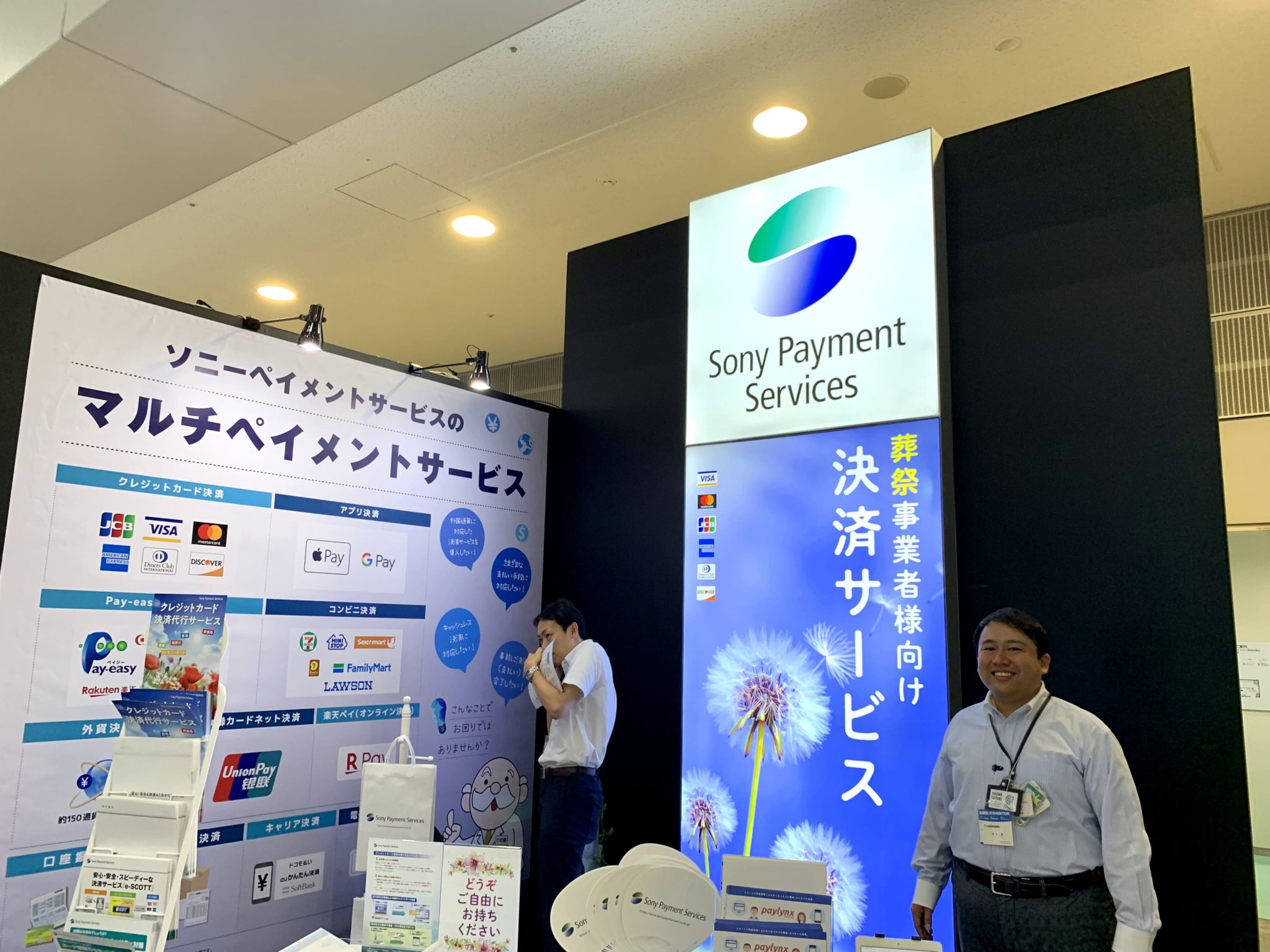 Sony Payment Services(ソニーペイメントサービス) は、クレジットカード決済業およびその他決済サービス業などを行う会社である。葬儀費用や葬儀場・斎場の利用料・御香典といった特殊商材にもクレジットカード決算の導入を提案する。今回の出展は、パートナー企業であるキュリオワークスが、その決済サービスを活用した「paylynx」(ペイリンクス)というサービスの提案をしている。