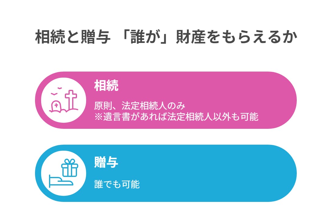 相続と贈与では、財産を受け取れる人の範囲が大きく異なります。