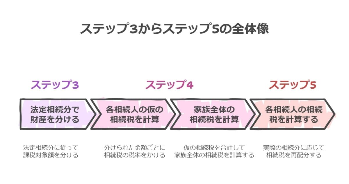 相続税の計算は、ステップ3からステップ5にかけて少し複雑な流れになります。