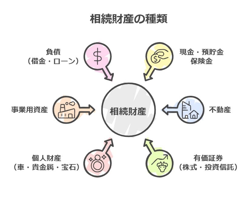 まず、財産の総額を把握する必要があります。財産には様々な種類があり、現金や預貯金、不動産(土地・建物)、有価証券(株式・投資信託など)といった一般的なものから、生命保険金や死亡退職金、美術品・貴金属・骨董品なども含まれます。