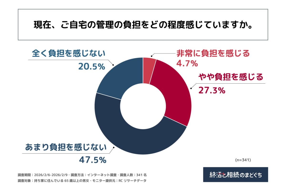 持ち家に住んでいる65歳以上の男女の約3人に1人が、自宅の管理に負担を感じている